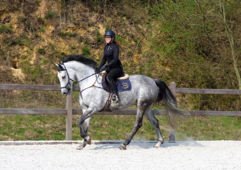 Calcuta PH Z is a grey mare born on October 23, 2013, sired by Cancara Z, a son of Cassini I, out of Showtime Z, a daughter of Sandro Z. She stands at 173 cm at the withers. She had a brief career in eventing, demonstrating strong willpower and great determination. She is the dam of three fillies born in 2021, 2022, and 2024, all exhibiting the elegant conformation and charisma characteristic of their mother. She is offered for sale to free up space in my stables. Currently, she is in foal to Rubicell, a son of the renowned dressage stallion Rubinstein. Rubicell is recognized as a successful breeding stallion and competitive horse, particularly in dressage and eventing. He has sired numerous talented offspring, including FBW Rainman and River of Joy. He combines the high-level dressage blood of his sire Rubinstein with the versatility of his dam, a mare by the rare show jumping stallion Lord Liberty. Such progeny are quite rare. For further information: Philippe Adriaensen +32 497 12 91 18