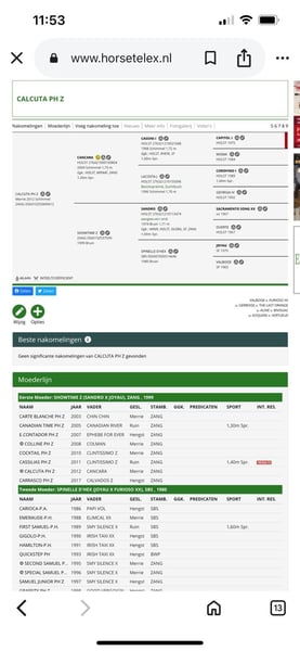 Calcuta PH Z ist eine graue Stute, geboren am 23. Oktober 2013, Tochter von Cancara Z, einem Sohn von Cassini I, und ShowTime Z, einer Tochter von Sandro Z. Sie ist 1,73 m groß am Widerrist. Sie hatte eine kurze Vielseitigkeitskarriere und zeigte dabei eine starke Willenskraft sowie große Entschlossenheit. Sie ist Mutter von drei Fohlen, geboren 2021, 2022 und 2024, alle mit dem eleganten Erscheinungsbild und Charisma ihrer Mutter. Sie wird verkauft, um Platz in meinem Stall zu schaffen. Derzeit ist sie tragend von Rubicell, einem Sohn des berühmten Dressurhengstes Rubinstein. Rubicell gilt als leistungsstarker Zuchtwallach und Turnierpferd, insbesondere in Dressur und Vielseitigkeit. Er hat zahlreiche talentierte Nachkommen hervorgebracht, darunter FBW Rainman und River of Joy. Er vereint die starke Abstammung seines Vaters Rubinstein im Dressur mit der Vielseitigkeit seiner Mutter, einer Stute des seltenen Springhengstes Lord Liberty. Weitere Informationen: Philippe Adriaensen +32 497 12 91 18