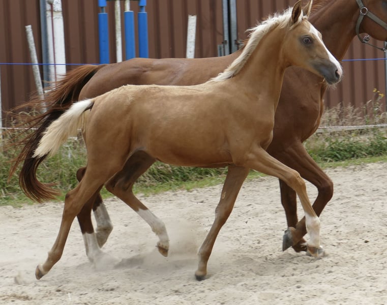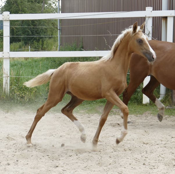 Miranda A "die Bewundernswerte" - absolut überzeugender Nachwuchs in blond von Michelangelo aus der Iphigenia von Ismo (Ilasso x First Gotthard x Zeus). Bewegungsstark und sportlich, anschauen und verlieben! Für alle Sparten offen, hochinteressant für Vielseitigkeit und Springsport! Bild Palomino am Sprung ist eine 4j. Vollschwester, Video freispringen der Mutter