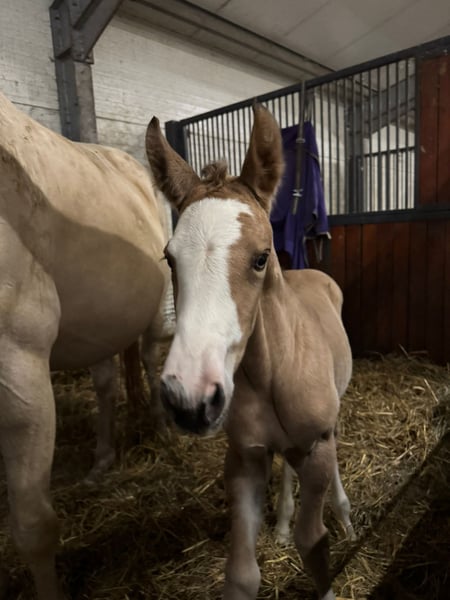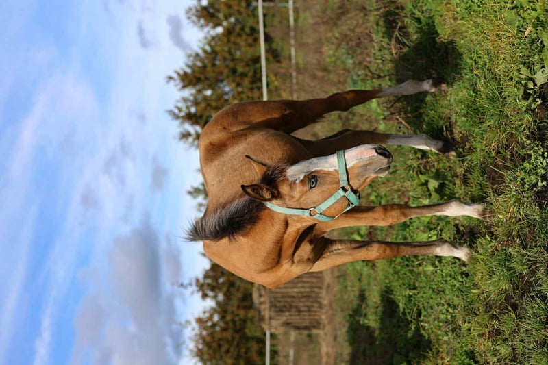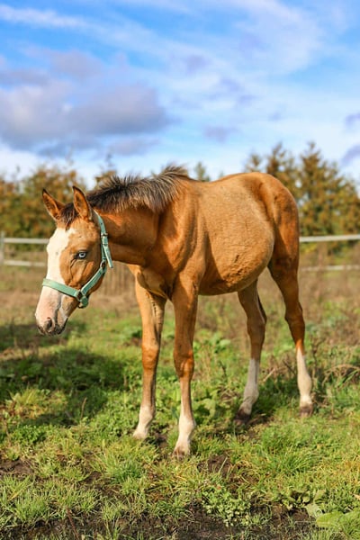 Nowego domu szuka wyjątkowa maści klacz jelenia z niebieskimi oczami, docelowy wzrost +/- 167 cm, po ogierze Nasdaq Z, klacz bardzo kontaktowa, energiczna, ciekawska, bezproblemowa przy zabiegach pielęgnacyjnych, kowalu czy weterynarzu. Nauczona wiązania, chodzi na spacery w teren jak i z innymi końmi.