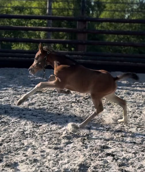 Belgium – Family Breeding Available for weaning in November 2025: Filly from an exceptional cross --> Comilfo Plus x Corland x Heartbreaker We offer a beautiful filly born with us in April 2025, in a serene environment that respects the development of the young horse. She is the result of a thoughtful cross between performance, temperament, and modernity. Prestigious lineage: • Comilfo Plus Z – one of the most remarkable sons of Comme Il Faut, known for passing on flexibility, respect, and a modern style over jumps. • Corland – an essential breeding stallion, father of many international winners in CSI. • Heartbreaker – a true legend in show jumping, renowned for his mental strength, responsiveness, and ability to instill the desire to jump. This filly is a rare opportunity to acquire a direct descendant of three bloodlines that have marked the history of international jumping. She combines a harmonious build, beautiful movement, and a curious, respectful temperament that is close to humans. Her potential reservation will be valid upon receipt of a deposit! What we guarantee: • Born and raised with us, in a healthy and secure environment • Handled from birth, accustomed to humans and routine care • She will be sold with everything in order: microchip, Z passport, deworming, hoof care, and up-to-date vaccinations • She will be registered with a recognized stud book and ready to evolve smoothly towards a sporting or breeding career • Possibility to keep her in our pastures (14 hectares) with her group of friends (contact us for conditions) ✨ An ideal filly for an informed amateur, a demanding breeder, or a professional looking for young horses with potential. Her pedigree, quality of movement, and temperament are all promises for the future. More information, videos, and visits available upon request (DM or WhatsApp) Transport possible throughout Europe.