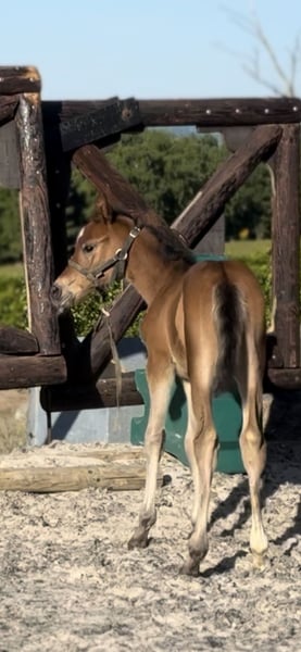Bélgica – Criadero familiar Disponible en destete en noviembre de 2025: Potra fruto de un cruce excepcional --> Comilfo Plus x Corland x Heartbreaker Ofrecemos una hermosa potra nacida en abril de 2025, en un entorno sereno y respetuoso con el desarrollo del joven caballo. Es el resultado de un cruce meditado entre rendimiento, mentalidad y modernidad. Orígenes prestigiosos: • Comilfo Plus Z – uno de los hijos más destacados de Comme Il Faut, reconocido por transmitir flexibilidad, respeto y un estilo moderno en el salto. • Corland – un pilar de la raza, padre de numerosos ganadores internacionales en CSI. • Heartbreaker – una verdadera leyenda del salto, famoso por su fortaleza mental, su reactividad y su capacidad para transmitir el deseo de saltar. Esta potra es una oportunidad rara de adquirir una descendiente directa de tres linajes que han marcado la historia del salto internacional. Combina un modelo armonioso, una hermosa locomoción y un temperamento curioso, respetuoso y cercano al ser humano. Su posible reserva será válida tras la recepción de un anticipo. Lo que garantizamos: • Nacida y criada en nuestro criadero, en un entorno sano y seguro. • Manipulada desde el nacimiento, acostumbrada al contacto humano y a los cuidados habituales. • Se venderá con todo en orden: microchip, pasaporte Z, desparasitaciones, recortes de pezuñas y vacunaciones al día. • Estará inscrita en un libro de cría reconocido y lista para avanzar serenamente hacia una carrera deportiva o de cría. • Posibilidad de dejarla en nuestros prados (14 hectáreas) con su grupo de amigos (contáctenos para las condiciones). ✨ Una potra ideal para un aficionado informado, un criador exigente o un profesional en busca de jóvenes caballos con potencial. Su pedigree, su calidad de movimiento y su mentalidad son promesas para el futuro. Más información, videos y visitas a pedido (MP o WhatsApp). Transporte posible a cualquier parte de Europa.