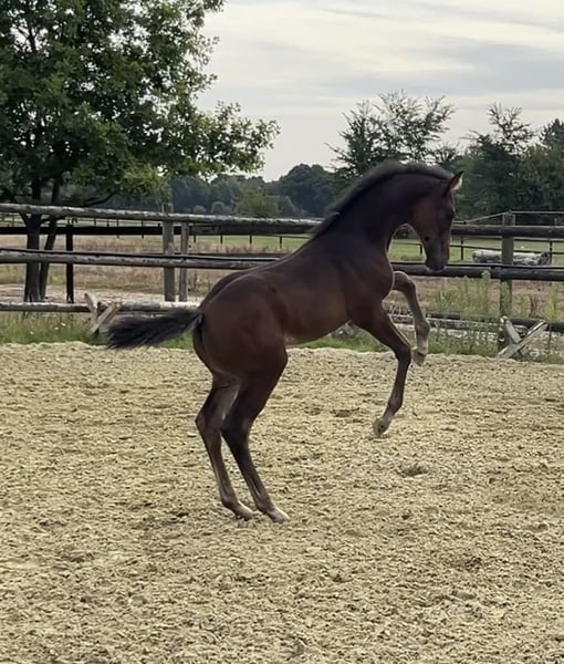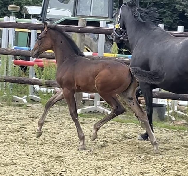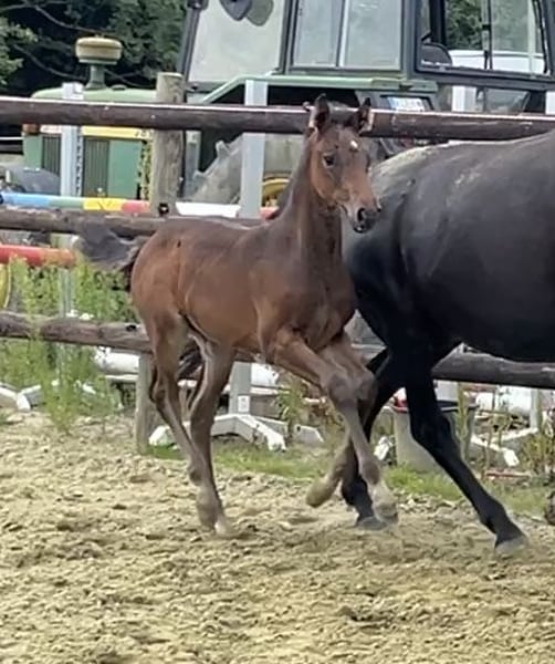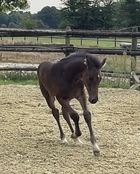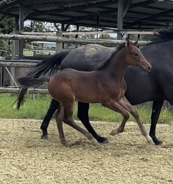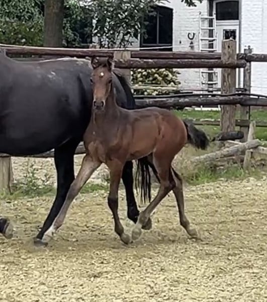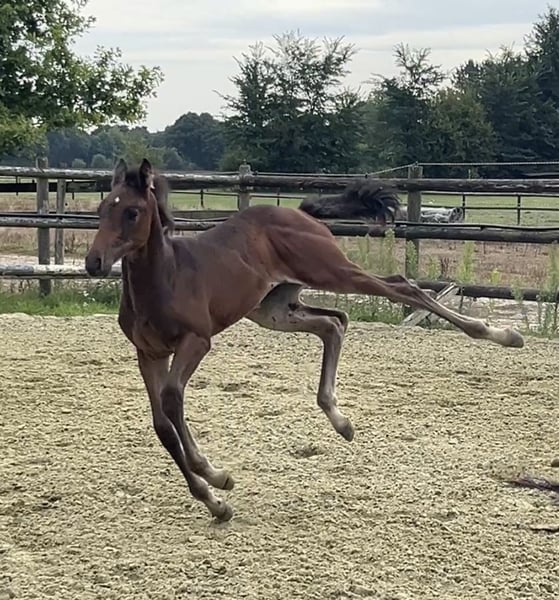 Born on June 21, 2025, Corali is a young mare with a solid foundation. Equipped with a hindquarters like a Quarter Horse, she will not lack in strength. Her father, Cote d'Or Z, has successfully jumped over 1.55m, followed by Carambole and Diamond's Billy, both of whom have jumped over 1.60m, and so on. On the maternal side, not much needs to be said: Diarado and Carthago, as well as the grandmother Pur Lady, have all made a mark in show jumping. A beautiful and promising mare is growing up here.