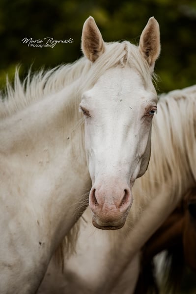DOUBLE CREAM Z is a young, people-friendly mare with a clear head and expressive appearance. She is growing up in a mixed group of young mares and is familiar with everyday contact with people. She is curious, attentive and eager to move. She is familiar with the first elements of handling, but is definitely not yet ready to be broken in straight away. Sire: DON CREAM GF - premium stallion with a proven pedigree (DREAM OF GOLD - MASCARPONE GF), produces high-quality, versatile offspring Dam: WHIPPED CREAM GF - cremello broodmare with multiple successful offspring in European colour breeding Dam's sire: WIN THE GOLD - important sire in lightened warmblood breeding, with a dressage and jumping background