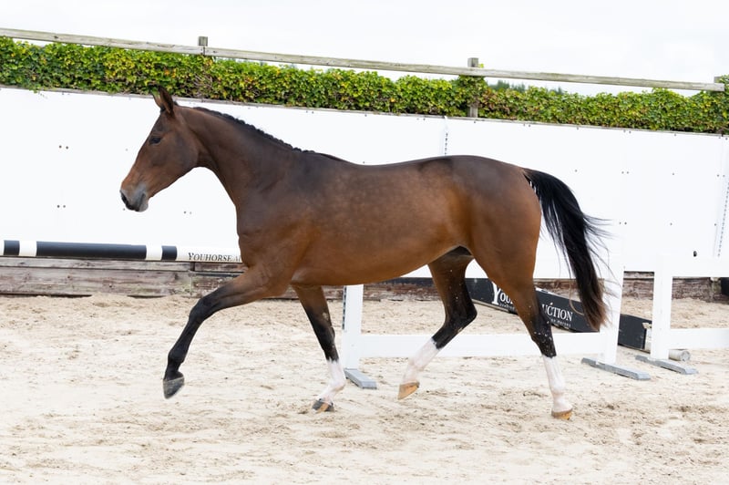 Who wouldn’t be a fan of top sire Kashmir Van Schuttershof? And this is also a mare with bloodlines. Exactly the type you want. The three-year-old Keymanthina SR Z jumps with good technique and ease. Kashmir Van Schuttershof performed at the highest level for many years himself and has produced numerous championship horses, such as H&M All-in and Gazelle. Mother Rustina vd Zandhoeve JW de Moerhoeve is a half-sister to two 1.40-1.45m show jumpers and three younger horses competing at 1.20-1.25m. She descends from Plot Blue x Tinka’s Boy. Great-grandmother is the well-known Diamanthina van ’t Ruytershof, a 1.60m Grand Prix mare and dam of approved stallions Le Blue Diamond van ’t Ruytershof (1.70m GP), Herald van ’t Ruytershof (1.60m GP), and Kentucky van ’t Ruytershof (1.55m GP). Diamanthina is recognized as the full sister of the Olympic stallion and top sire Emerald van ’t Ruytershof, and half-sister to three 1.60m-1.70m GP horses.
