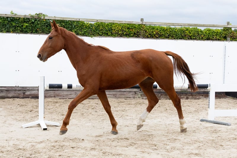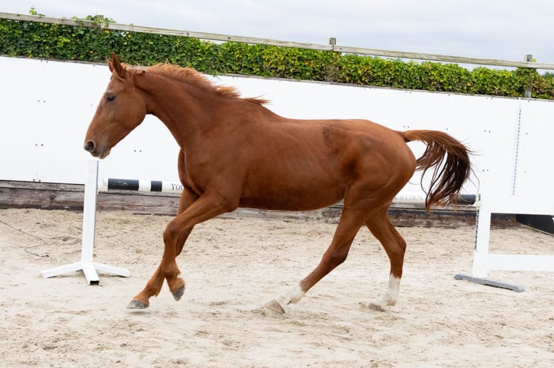 Op zoek naar een jong springpaard met fijn vermogen en een makkelijke galop? De driejarige New Galoubet K Z is een merrie die gaat passen. Vader Nashua Z (1.20m springen) is een AES-goedgekeurde hengst van Nabab de Reve uit de 1.60m Grand Prix-merrie Cruisly, de halfzus van de goedgekeurde hengsten President (1.40m springen) en Ulysses M2S (1.60m Grand Prix). Moeder Jazzy de Galoubet K Z stamt af van de Franse hengst Jazz de Coquerie (1.40m springen) x Galoubet A x Double Espoir. Ze is een halfzus van het 1.60m Grand Prix-springpaard S L Elite, gereden door Dorothy Douglas (USA). Nauw verwant is het 1.50m springpaard Air de Soie Dit paard komt uit de stal van één van de beste fokkers van Nederland, die zelfs tot KWPN fokker van het jaar werd gehuldigd. Taloubet en Big Star behoren tot zijn bekendste fokproducten. De paarden uit deze fokkerij zijn opgegroeid in alle rust en ruimte, hebben in kuddeverband in de weides gelopen en alle tijd gekregen om zich natuurlijk te ontwikkelen. Er is nog nooit met hen getraind – ze zijn enkel halstermak – en komen dus rechtstreeks uit de opfok. Dat maakt ze bijzonder interessant voor wie zelf een jong paard naar eigen inzicht wil opleiden. Ze zijn eerlijk, onbedorven en zuiver gefokt, rechtstreeks uit de hand van een gerenommeerde fokker.