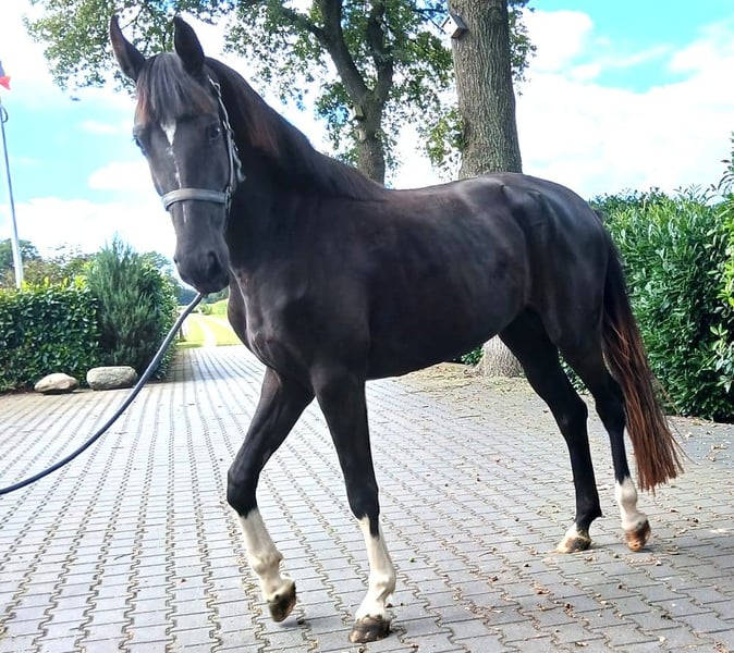 Bonita y elegante yegua de Zangersheide, pasa en manada, no está montada pero es fácil de manejar, con el herrador y en el remolque.