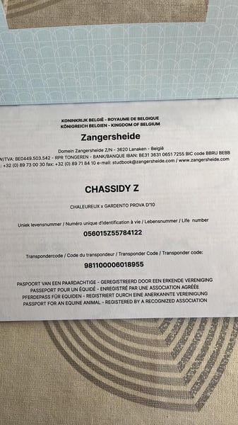 Chassidy Z – Zangersheide Mare (2022) Modern, high-quality Zangersheide mare with a strong show jumping pedigree. Date of birth: July 5, 2022 Pedigree: Chaleureux × mare by Gardento Prova Chassidy Z is a well-conformed, modern type with a light, agile movement and a good temperament. She comes from a performance-oriented dam line with proven jumping genetics. A promising prospect for both sport and future breeding. 📍 Zangersheide registered 🎯 Bred for show jumping 🐎 Young horse with potential Rx and clinically approved