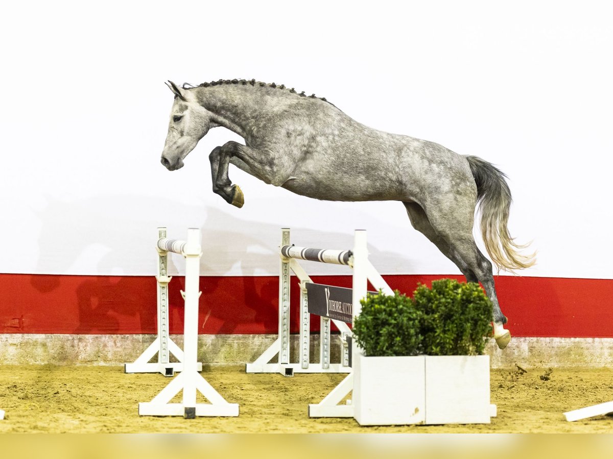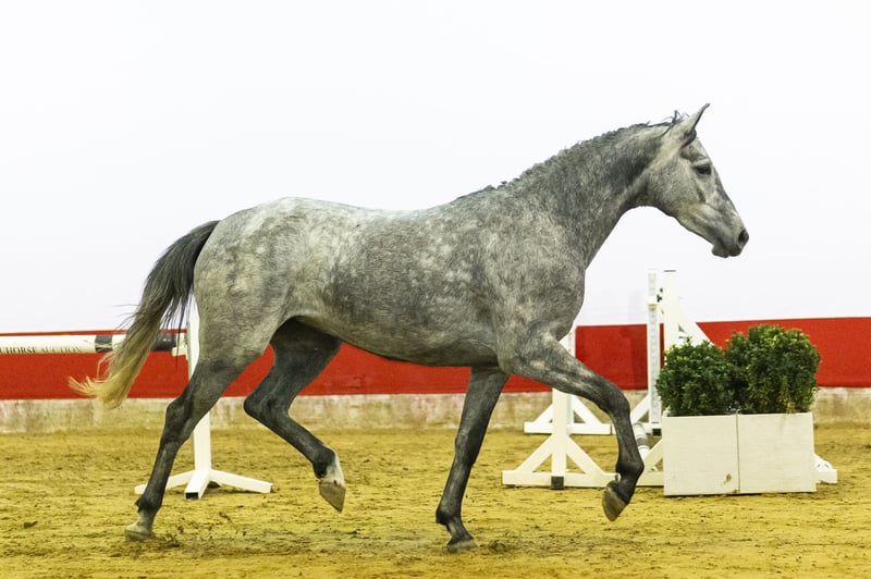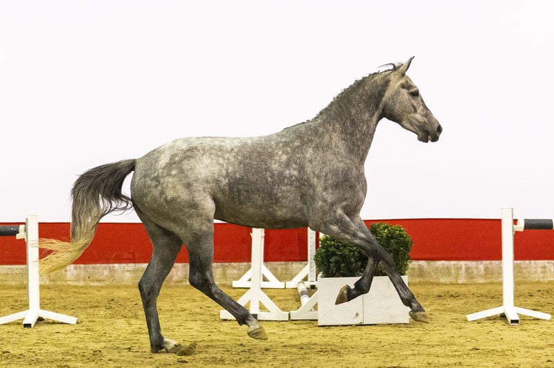 Impressive grey mare, light-footed and quick off the ground. She has a beautiful model, is well put together and shows good balance. Recently started under saddle and taking the work well. A modern sport horse with presence and clear quality for the future. Sire Cornet Obolensky (1.60m Grand Prix) is a BWP Ambassador and approved by KWPN, Holstein, BWP and SF among others. He has produced numerous international Grand Prix horses including Clooney 51 (1.70m), Coree (1.70m) and Balou du Reventon (1.70m). A proven producer of scope, reflexes and mentality. Dam Quilane du Rouet competed at 1.45m level and is a daughter of Olympic stallion Baloubet du Rouet (1.60m Grand Prix, approved in multiple studbooks). This damline produced several international jumpers: Cash du Rozel (1.45m), Hotshot du Rozel (1.45m), Remarkable II (by Emerald van ’t Ruytershof, 1.45m), Desir du Rouet (1.45m), Maloubet du Rouet (1.50m), Neco du Rouet (1.45m) and multiple 1.35m–1.40m level horses. Approved stallions from this family include Quatoubet du Rouet (1.60m), Helico du Rouet (1.50m), Caloubet du Rouet (1.60m), Pezetas du Rouet (1.50m), Jivaro du Rouet (1.45m) and Jasmin du Rouet (1.45m). A strong French performance line consistently producing 1.40m–1.60m level horses.