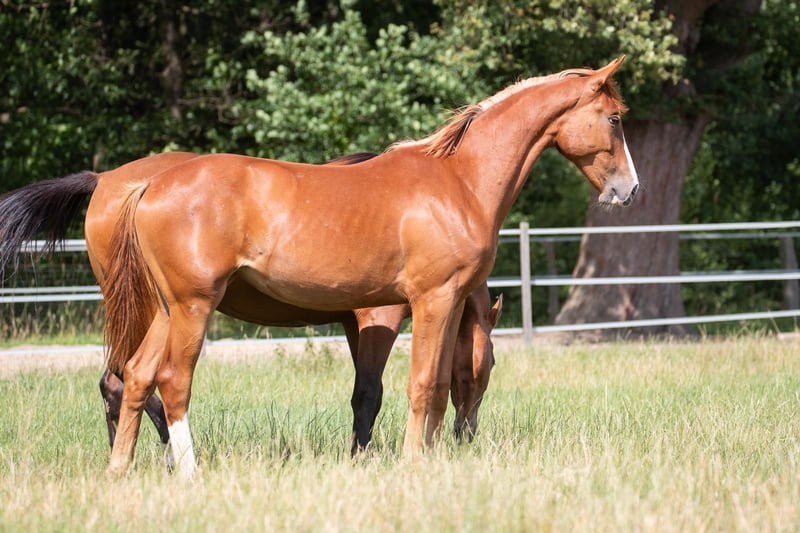 4-year-old mare by Ogano Sitte x Georgij x Stakkato Gold x King Kolibri x Baloubet Approximately 1.68 m tall, bloodlines, good basic gaits, very good canter, well-behaved in handling, due to injury available for sale as a breeding or recipient mare at or near the asking price to a good home. Possibly still suitable for riding under certain conditions. The dam line has produced several successful horses. Can also be bred here with a preferred stallion. https://www.horsetelex.de/horses/pedigree/2320515/olympia-hylanderhof-z