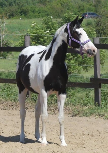 Une garantie de couleur à cent pour cent pour tous les amis des pie et les éleveurs. Nous vendons dans des mains appréciatives notre jument pie de race pure âgée de 4 ans, avec de bons mouvements et une excellente lignée. Avec ses 156 cm, elle est malheureusement un peu petite pour nos objectifs sportifs, c'est pourquoi elle a seulement été longée et saillie jusqu'à présent. Elle est gentille et facile à gérer, tant seule qu'en groupe. Actuellement, elle est gestante du premier lot du étalon pie de race pure Outlander Z / (Obi-Wan). Sweet Caroline Z a été saillie naturellement lors de son premier essai. De cette union naîtra un poulain de race pure avec de bons papiers recherchés pour la poursuite de l'élevage. Le prix augmentera en raison des coûts de soins et de nourriture à mesure que la gestation avance. Avec une formation supplémentaire, elle conviendrait également comme une excellente monture pour dames, juniors ou cavaliers en reconversion.