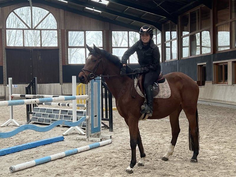 Et si c'était elle AG Z – Superbe jument de 5 ans « Et si c'était elle AG Z » est une très jolie petite jument de 5 ans, directement issue de notre élevage. Débourrée à la fin de ses 4 ans, elle a été mise à la reproduction juste après. Elle est pleine du célèbre étalon Ermitage Kalone et, après le sevrage de son poulain, pourra soit reprendre le sport, soit rester poulinière grâce à ses origines exceptionnelles. Elle est petite-fille directe de Hickstead via sa mère, garantissant un potentiel génétique de premier ordre. Une jument à suivre pour sa polyvalence et son excellent pedigree.