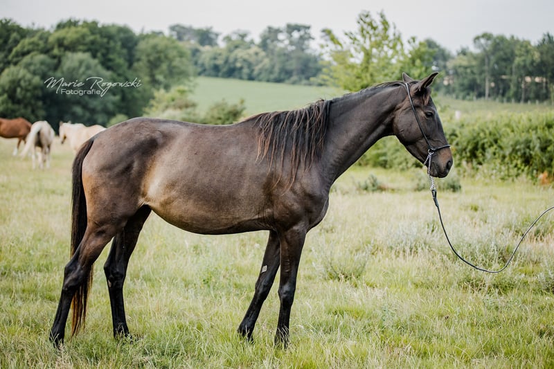 Stute | Zangersheide | Dunkelbraun | geb. 2020 MIDNIGHT Z ist eine elegante, großrahmige Jungstute mit ausdrucksstarkem, klar gezeichnetem Kopf und auffallend gutem Bewegungsablauf. Besonders ihr Trab überzeugt durch Schwung und Elastizität. Sie zeigt sich im Umgang freundlich, neugierig und unkompliziert. Ihr Vater Mykonos vereint modernes Dressurblut über Millennium und den weltbekannten Desperados FRH, der 2016 als Nummer 1 der Dressurpferde weltweit geführt wurde. Ihre Mutter Funny Girl ist eine der wenigen warmblütigen Zuchtstuten mit gesichertem Dun-Gen und bringt sportliche Reitpferde mit seltener Farbgenetik hervor.