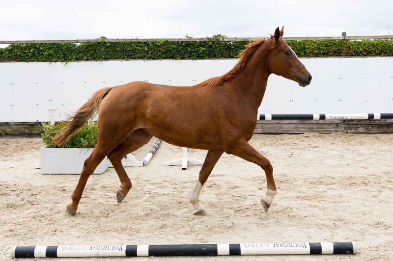 The five-year-old Juberlina K Z has not yet started training and comes straight from the pasture. Despite her inexperience, she takes off well for the jump and develops scope. Sire Jaloubet K debuted last year at age ten at international 1.50m level with The Jelcic (CRO). He is a half-brother to 2011 World Cup Final winner Taloubet Z (1.60m GP with Christian Ahlmann), Obadja (1.60m GP) and the stallion Big Star JR KZ (1.55m GP). Dam Zuberlina Z (Zandor Z) jumped 1.30m courses and also gave C.Armani (1.35m level). Granddam Lady Uberlina H is a preferent keur-prestatie mare by Ramiro x Nimmerdor x Abgar xx from the Oberlina family. She gave the stallion Santa Cruz VDL (1.60m GP) and two 1.40m level showjumping horses. Closely related are the 1.60m Grand Prix horses Eye Catcher JB and Cordis Totalis Z and the 1.50m level horses Glock’s Ambelina JB and Cuberlina II Z. This horse comes from the stable of one of the best breeders in the Netherlands, who was even honored as KWPN Breeder of the Year. Taloubet and Big Star are among his most famous breeding products. The horses from this breeding program have been raised in peace and space, living in herds out in the fields and given all the time they needed to develop naturally. They have never been trained – only halter-broken – and come straight from rearing. This makes them especially appealing to anyone who wants to bring on a young horse according to their own vision. They are honest, unspoiled, and purely bred, straight from the hands of a renowned breeder. This horse was previously sold through our auction to a buyer in Iran. Due to the current situation there, export is currently not possible. The buyer is naturally very disappointed, but sees no way to bring the horse to Iran for the time being. Therefore, he has asked us to offer it again through auction. There is nothing wrong with the horse. It's simply a matter of the circumstances surrounding export. Perhaps this is a great opportunity to secure this horse for you.