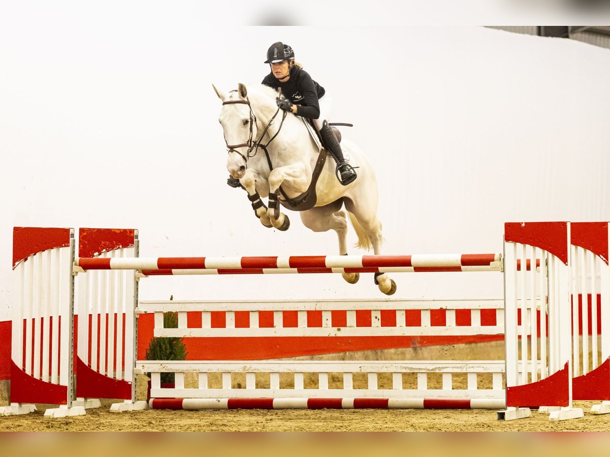 E-Gold is an eye-catching grey mare with experience at 1.30m level. She stands out with her big canter, rideability and strong attitude. Under saddle she offers a lot of comfort, is light to ride and works well with her rider. She shows clear scope and mentality for higher level sport, making her interesting for both competition and breeding. Sire E-Star (Big Star x Heartbreaker) competed at 1.40m level himself and has proven his value as a sire. His offspring include Rockstar (1.60m Grand Prix), I’m a Star (1.60m) and King of Rock (1.55m). E-Star is known for passing on canter, sharpness and a strong sport mentality. Dam Goldine (Vingino) jumped at 1.30m level and comes from an exceptionally strong performance line. Close relatives include several international showjumpers such as Alaska (1.45m), Hotspot (1.40m), Foldine (1.40m) and again Rockstar (1.60m). Further down the damline we find many 1.45–1.60m horses and approved stallions, confirming the strength of this international sport family. E-Gold combines rideability, scope and attitude with a proven damline. A mare with clear added value for both sport and breeding.