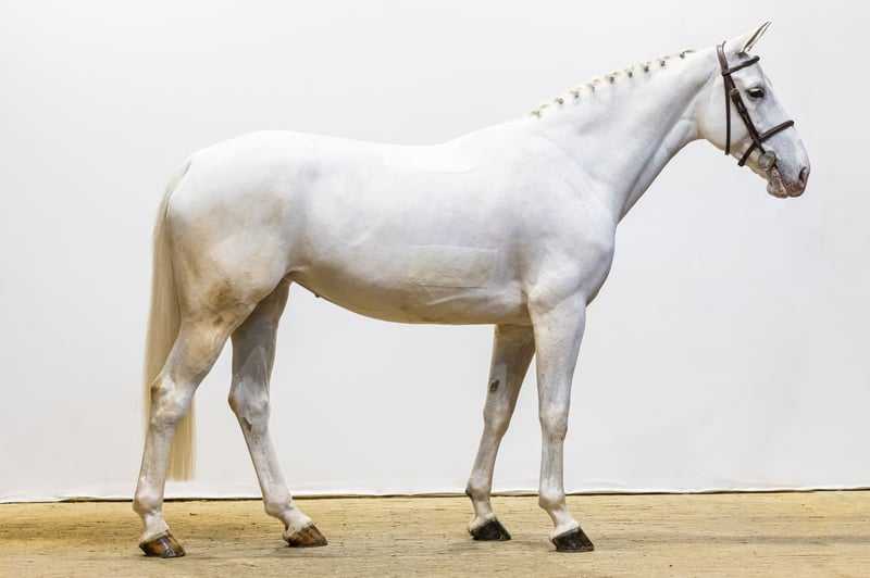 E-Gold to przyciągająca uwagę siwa klacz z doświadczeniem na poziomie 1,30 m. Wyróżnia się dużym galopem, łatwością jazdy i silnym charakterem. Pod siodłem zapewnia komfort, jest lekka w prowadzeniu i dobrze współpracuje z jeźdźcem. Wykazuje wyraźny potencjał i mentalność do wyższych poziomów sportu, co czyni ją interesującą zarówno do startów, jak i hodowli. Ojciec E-Star (Big Star x Heartbreaker) sam startował na poziomie 1,40 m i potwierdził swoją wartość jako ojciec. Do jego potomstwa należą Rockstar (Grand Prix 1,60 m), I’m a Star (1,60 m) oraz King of Rock (1,55 m). E-Star jest znany z przekazywania dobrej pracy galopu, zwinności i silnego sportowego temperamentu. Matka Goldine (Vingino) skakała na poziomie 1,30 m i pochodzi z wyjątkowo silnej linii hodowlanej. Wśród jej bliskich krewnych są liczni międzynarodowi skoczkowie, tacy jak Alaska (1,45 m), Hotspot (1,40 m), Foldine (1,40 m) oraz ponownie Rockstar (1,60 m). W dalszej linii matki znajdziemy wiele koni na poziomie 1,45–1,60 m oraz zatwierdzonych ogierów, co potwierdza siłę tej międzynarodowej rodziny sportowej. E-Gold łączy łatwość jazdy, potencjał i charakter z potwierdzoną linią matczyną. Klacz o wyraźnej wartości dodanej zarówno dla sportu, jak i hodowli.