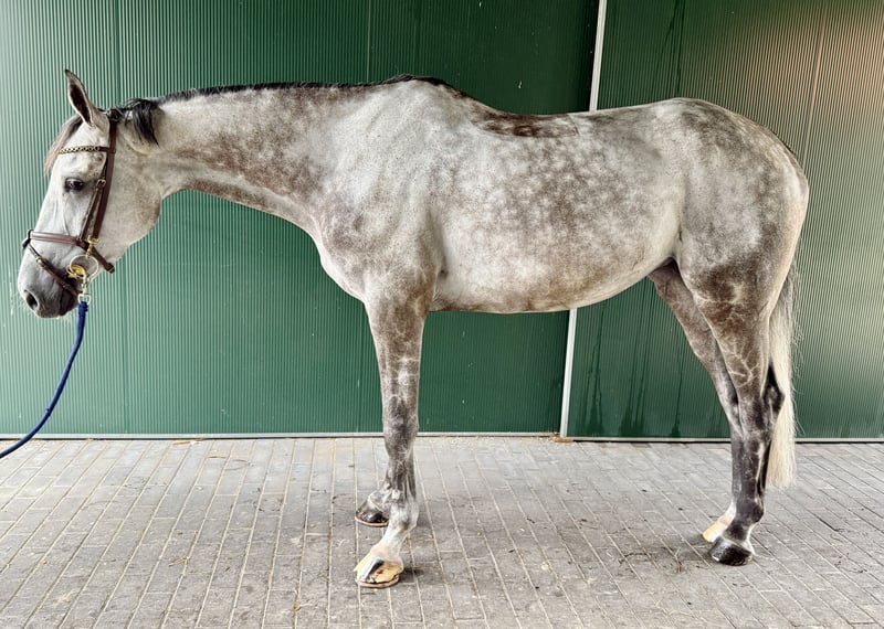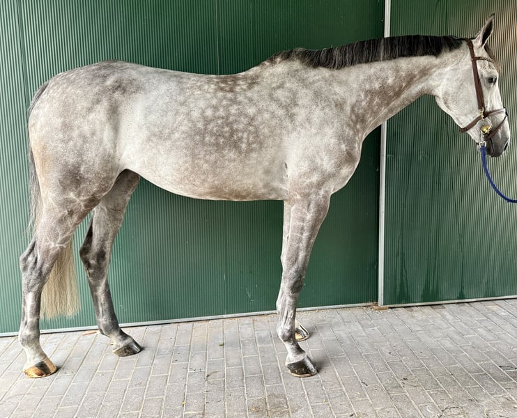 Inquiries exclusively via phone or WhatsApp at +49 1511 7665701. This 7-year-old mare by Berlin x Balou du Rouet is available for sale. She stands approximately 1.70 m (16.1 hh) and has competed up to 110 cm in show jumping. She demonstrates great potential over fences and is always very careful. Bella consistently aims for the other side of the jump and is not spooky at all. She is also easy to ride in dressage. Overall, she is a sensitive horse and therefore not suitable for beginners or children. Current health certificate is up to date, and videos are available.