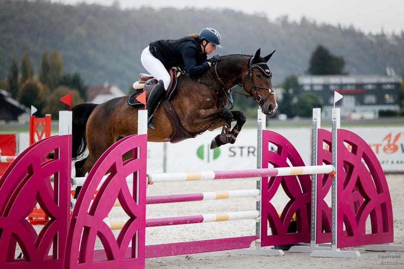 Trebbi is a tall, lovely mare by Taloubet Z out of a Papillon dam. She initially started her career in breeding and produced a foal by Kasanova de la Pomme. Only afterward was she backed and competed in small classes in Germany. Earlier this year, she was sold to the Czech Republic and has completed her first full competition season. Despite not having had extensive winter training, the mare has already demonstrated her potential during the show season. With each start, she has gained strength, consistency, and confidence, becoming more cautious and ambitious. In October, she competed three times at 1.15 m and is already jumping 1.30 m rounds at home without any issues. She is fearless over large jumps, never refusals, always clears the obstacle, and approaches jumps with confidence. Occasionally, she can be a bit sensitive to her environment, but she is never spooky at the jump. She is ridden by a woman, responds well to aids, and maintains a steady contact. She receives regular physiotherapy, hoof care, dental treatment, etc. Naturally, she is in excellent health, and radiographs are available. We have several other interesting horses listed. If you are looking for something different, please feel free to contact us. Want to see what our work is all about? Visit our Facebook page, where you can also find reviews from our international clients.
