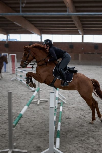 Vends une jument alezane de 8 ans, mesurant 1,70 m. Issue du stud-book Zangersheide. Entraînée en saut d'obstacles jusqu'à la catégorie M. La jument est très proche de l'humain, douce au manège et très facile à ferrer. Très volontaire et motivée au travail, elle se montre facile à monter, mais elle n'est pas recommandée pour les débutants. Elle est inscrite en compétition et entièrement à jour de ses vaccinations.
