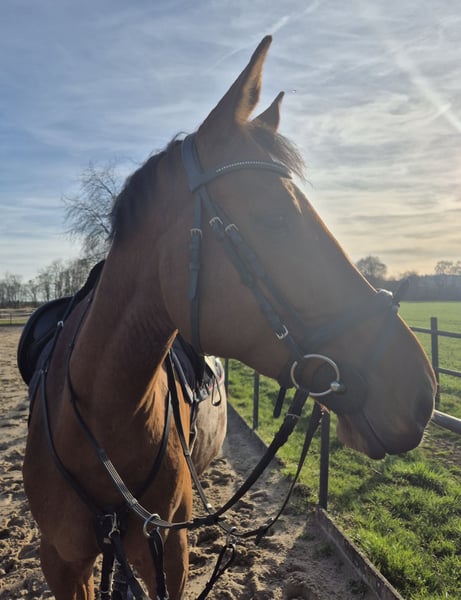 Hallo, mein Name ist Zora. Ich bin eine 9 jährige Zangersheide Stute (Action Breaker x Quintender) und auf der Suche nach einem neuen zu Hause. Ich wurde 4 jährig angeritten, wurde aber in den letzten Jahren als Zuchstute eingesetzt. Seit September werde ich nun wieder voll geritten. Die tägliche Arbeit unter dem Reiter oder an der Longe bereitet mir sehr viel Freude. Hierbei zeige ich mich stehts motiviert und möchte meine Aufgabe immer erfüllen. Meine Reiterin sagt, dass ich mich in den letzten Monaten toll entwickelt habe. Allerdings sollte das Springen noch nicht im Vordergrund stehen, da ich hier noch sehr übereifrig bin. Mit der Zeit werde ich das sicherlich auch noch meistern. Das dressurmäßige Reiten sowie Stangenarbeit beherrsche ich bereits sehr gut. Da es in meinem derzeitigen Stall keine Halle gibt, werde ich ausschließlich draußen auf dem Reitplatz gearbeitet. Ich kenne also jegliche Witterungsbedingungen sowie Flutlicht. Natürlich bin ich schmiede und verladefromm. ⭐️ Im Auftrag eines Züchters zu verkaufen ⭐️ tolles, braves und absolut ehrliches Pferd. Ideal als Damen oder Umsteigerpferd (ca 1,62m groß) geeignet. Macht täglich Spaß und ist unkompliziert im Umgang. ⭐️nicht für reine Anfänger geeignet. Dressumäßig sollte man schon auf einem E-A Niveau reiten können. Sie steht sehr gut an den Hilfen, ist fein zu reiten und ist nicht triebig. Leicht in der Anlehnung zu reiten. ⭐️weitere Betreuung in Form von Unterstützung oder Korrekturreiten durch mich nach dem Kauf möglich. (Sofern das Pferd im Umkreis verkauft wird) ⭐️ Preis ist VHB Habe ich dein Interesse geweckt? Meine Reiterin kann dir sicherlich noch mehr über mich erzählen. Einfach anschreiben oder unter 0151-28778377 telefonisch melden.