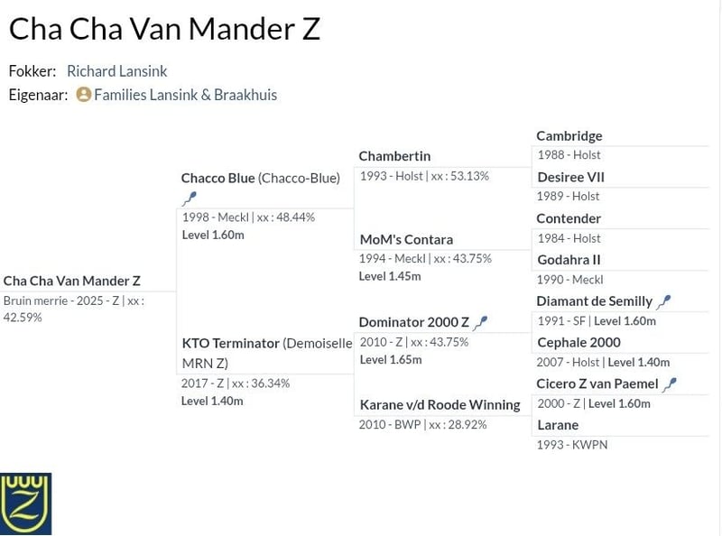 Well-bred filly by Chacco Blue out of a mare by Dominator 2000 Z. The mare has already competed at 1.40m at the age of 7. The foal is typy and has strong movement. From a good mare line, including Simon, World Cup final winner with Beezie Madden.