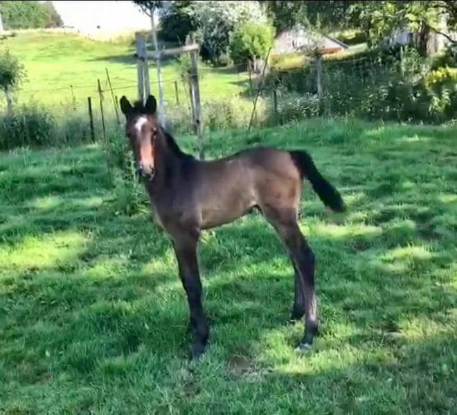Poulain attendu pour mai 2026, issu du croisement Jenson van ’t Meulenhof x Corland x Heartbreaker. https://www.horsetelex.fr/horses/pedigree/749532/jenson-van-t-meulenhof https://www.horsetelex.fr/horses/pedigree/2020310/maria La mère, bien que n'ayant pas été exploitée sportivement, se révèle être une excellente reproductrice, produisant des poulains avec du sang, du respect et une très bonne qualité générale. Sa production parle pour elle : - une fille de 6 ans a participé au championnat des jeunes chevaux à 5 ans et classée 11ᵉ meilleure jument au championnat de Belgique des jeunes chevaux. - les autres poulains issus de cette jument montrent également beaucoup de qualité et un très bon potentiel pour le sport. Le croisement avec Jenson van ’t Meulenhof promet un poulain moderne, avec force, respect et locomotion, idéal pour une carrière en CSO. ➡️ Sexe inconnu pour le moment ➡️ Réservation ouverte sur acompte, 50% à la naissance et solde au sevrage ➡️ Poulain élevé dans de bonnes conditions, manipulé et sevré correctement 📍 Situé en Belgique / Liège 📹 Photos / vidéos de la mère et informations supplémentaires sur demande 📲 Contact WhatsApp : 0032479481088