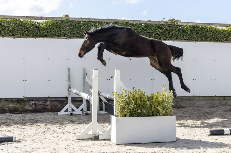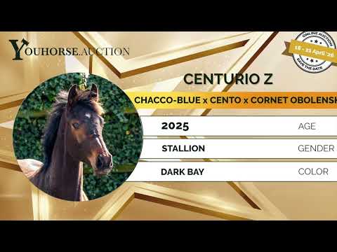 Groot, modern jaarling met veel bloed en uitstraling. Laat nu al zien dat hij veel afdruk heeft en licht van de grond komt voor zijn formaat. Compleet gebouwd en atletisch in beweging. Een paard met veel potentie, waarvan je het gevoel hebt dat hij zich richting de toekomst kan onderscheiden op niveau. Vader Chacco-Blue 1.60m Grand Prix Eén van de beste verervers wereldwijd met uitzonderlijk veel 1.60m paarden en internationale toppers. Moeder Centuria 7 (v. Cento 1.60m) 1.60m springen Moederlijn / stam Grootmoeder Corlida (v. Cornet Obolensky 1.60m) – 1.60m springen Overgrootmoeder Salida (v. Calido I) – Calida – 1.55m – Centuria 7 – 1.60m – Carry Me – 1.40m – Cool Boy 17 – 1.30m Verder in de stam: – Cent Blue – 1.55m – Vertical Limit – 1.60m – Freedom – 1.50m – Spartacus D – 1.45m – Game Boy 63 – 1.40m – Chica Pru – 1.40m – Action Sandra PS – 1.35m Goedgekeurde hengsten in de lijn: – Chacco-Blue – Cento – Cornet Obolensky – Calido I Zeer sterke internationale sportstam met veel 1.50m–1.60m paarden.