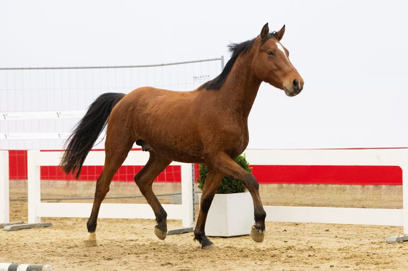 De tweejarige hengst Osolean de la Herbougere Z valt op met zijn zeer goede, lichtvoetige galop. Hij straalt veel kwaliteit uit. We mogen er ook best eens bij stilstaan dat sommige paarden nog heel jong zijn en lang moeten reizen om naar onze selectiedag te komen. Osolean had vier uur op de vrachtwagen gestaan om zich vervolgens toch nog goed te presenteren. Vader Omano BC is negen jaar en 1.50m springen geklasseerd onder Dirk Demeersman. Hij is niemand minder dan een zoon van Cumano uit McLain Ward’s gouden merrie Sapphire (Darco). Moeder Soleane d’Ethivy stamt af van de beroemde For Pleasure x Muguet du Manoir en gaf ook het zevenjarig 1.40m springpaard Illaria d’Argouges. Uit deze lijn komen ook de 1.60m Grand Prix-paarden Quel Chanu, Quinai des Chayottes, Lolita de la Loge, Qoud’Coeur de la Loge, Verdi O’Merveilles en Fandango X.