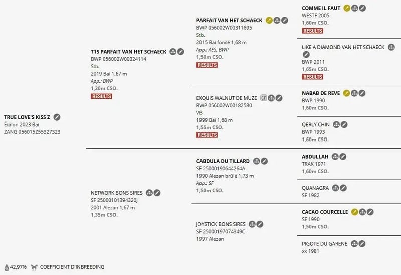 Exceptionnel 3 ans, très sport, top papiers ✨ True Love’s Kiss Z ✨ Poulain d’exception par T’is Parfait van het Schaeck – futur Grand Prix, performant dès 4, 5 et 6 ans. Issu de lignées de champions : Comme Il Faut, Cornet Obolensky, Galoubet, Cacao Courcelle, Nabab de Rêve, Qerly Chin, Diamant de Semilly. ★★★★★ Doté d’un dos court, d’une conformation harmonieuse et d’allures fluides, True Love’s Kiss Z est un poulain à la génétique et au potentiel exceptionnels. Entier froid, très sympa. Vit avec des juments en face ainsi qu’avec d’autres hongres et entiers. Pas dominant du tout, un amour de cheval. La mère 135 : Cabdulla du Tillard. ★★★★★ Galoubet ★★★★★ ; Cacao Courcelle ★★★★★ ; Jalisco B ★★★★★ Prédisposé, au vu de ses papiers, pour le saut. Bons aplombs, bonne tête, n’a peur de rien, solide. Cheval sain, jamais une boiterie. Environ 1m65. Respecte les clôtures. Charge bien, marche et trotte en longe. Opportunité à saisir 10k pour départ rapide -> Visite vétérinaire impeccable RAS cheval sain
