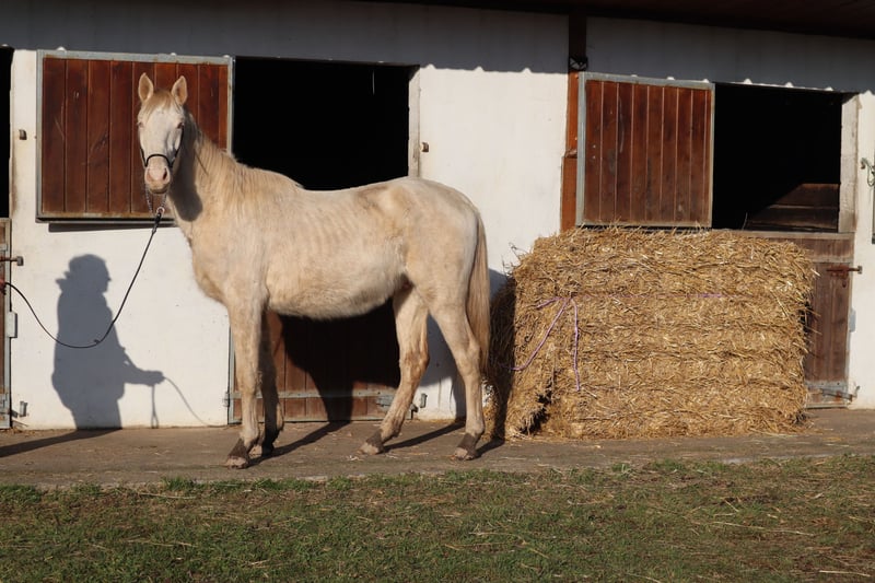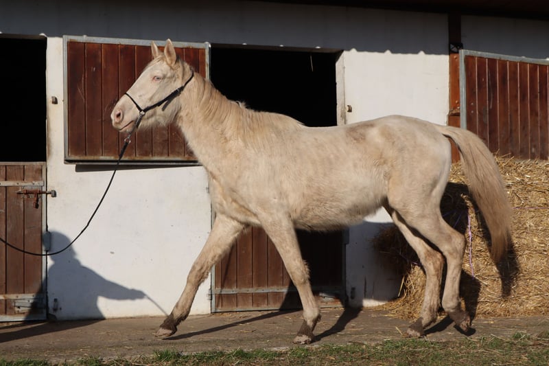Warmbluthengst | Perlino | geb. 2022 | 1,60m (measures 16th of June, 2025) Zangersheide Hauptstammbuch + IFCE (Facteur Selle Français) Genetik: E/_, A/_, CR/CR Kastration auf Wunsch möglich WIN MY HEART Z ist ein junger, aktuell noch schlaksiger Junghengst, der seine Jugend in einer artgerechten Aufzuchtgruppe mit täglichem Menschenkontakt verbringt. Er zeigt sich freundlich, neugierig und gelassen im Umgang. Führen, Putzen, Wurmkur, Impfen, Barhufpflege sowie Bodenparcours und Verladen (LKW) sind ihm vertraut. Durch sein korrektes Fundament, harmonisches Wachstum und seine Bewegungsgabe bringt er gute Voraussetzungen für eine vielseitige, spätere Nutzung mit. Vater: WHITE WINE GF mit bewährten Linien über WELTMEYER, WOERMANN, LADYKILLER, NOTAR Mutter: PHANTASIA GF, prämierte und bewährte Oldenburger Stute in Buckskin, mit international erfolgreicher Nachzucht Muttervater: NARISTON OLD – sportlich geprägter Oldenburger Hengst mit solider Vererbung Gezüchtet in siebenter Generation im eigenen Haus (Gestüt Falkenhorst, seit 1978), mit hohem Hannoveraner-Anteil und einem Schuss englisches Vollblut Züchterisch sind ihm viele Wege offen: z. B. KWPN, Zangersheide, Royal Belgium Warmblood, Anglo European Studbook.