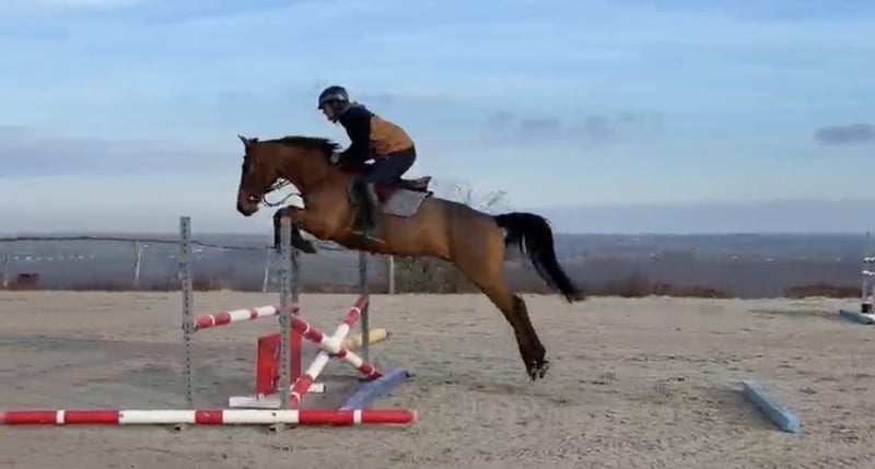 Stute von Comilfo Plus Z x Kashmir Van Schuttershof 10 Jahre – 16,1 hh César ist eine hübsche Stute mit viel Potenzial. Sie wurde mit vier Jahren eingeritten und lebte danach hauptsächlich auf der Weide bei ihrem Züchter, der sie für seine Kinder behalten wollte… ein Projekt, das letztlich nie umgesetzt wurde. Daher ist sie noch relativ unerfahren im Training und muss in ihrer Ausbildung noch weiter gefördert werden. Sie ist dynamisch, aber brav, zeigt sehr gute Anlagen und eine echte Motivation, es richtig zu machen. Sie ist eine menschenbezogene Stute, die es schätzt, gepflegt zu werden, und im Alltag angenehm im Umgang ist. Sie geht problemlos alleine oder in Gesellschaft spazieren. Aktuell absolviert sie einen Parcours bis 90/100 cm, war bereits im externen Training unterwegs und hat zu Hause auf einzelnen Stangen auch schon höher gesprungen. Aufgrund ihres Tempos und ihres tollen Kopfes könnte sie auch sehr gut für den Cross geeignet sein. ✔️ Pflegeleicht im Umgang ✔️ Geht problemlos alleine oder mit anderen auf die Weide ✔️ Lieb und kooperativ ✔️ Guter Geist, schaut nichts Sie zeigt ein Potenzial für 125/130 cm. Ideal für jemanden, der sie aufwerten möchte, oder für einen Reiter, der ein hübsches, vielseitiges Pferd mit Qualität sucht. 📍 Sichtung in Belgien – Region Lüttich (Sprimont) 📅 Nur nach Terminvereinbarung 📞 KONTAKT NUR unter 0032 485 13 50 45 WhatsApp möglich
