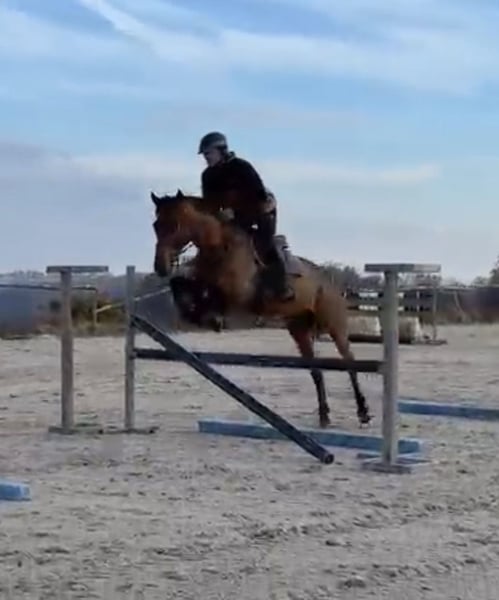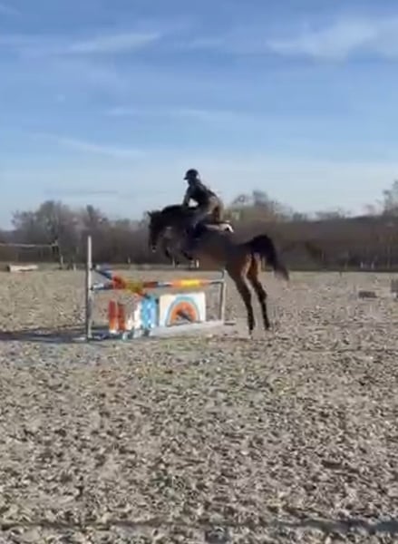 Hongre par Comilfo Plus Z x Kashmir Van Schuttershof 10 ans – 167 cm César est un hongre au beau modèle et un vrai potentiel à exploiter. Débourré à 4 ans, il a ensuite principalement vécu au pré chez son éleveur, qui souhaitait le garder pour ses enfants… projet qui n’a finalement jamais abouti. Il est donc resté relativement vert dans le travail et reste à finaliser dans sa formation. Dynamique tout en restant brave, il montre de très bonnes dispositions et une réelle envie de bien faire. C’est un cheval proche de l’homme, qui apprécie qu’on s’occupe de lui et qui est agréable au quotidien. Il part en balade sans souci, seul comme accompagné. Il enchaîne actuellement un parcours à 90/100 cm, est déjà sorti en entraînement extérieur et a sauté davantage à la maison sur des barres isolées. Au vu de son sang et de sa super tête, il pourrait également très bien convenir pour du cross. ✔️ Pratique aux soins ✔️ Va au pré seul ou avec d’autres sans souci ✔️ Gentil et coopératif ✔️ Bon mental, ne regarde rien Il présente un potentiel 125/130 cm Idéal pour quelqu’un qui souhaite le valoriser, ou pour un cavalier voulant un chouette joli cheval polyvalent avec de la qualité. 📍 Visible en Belgique - région Liège (Sprimont) 📅 Sur rendez-vous uniquement 📞 CONTACT UNIQUEMENT au 0032 485 13 50 45 WhatsApp OK
