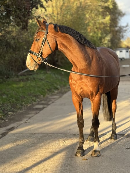 *** Please contact via WhatsApp at 017624297968 *** Lord is a stunning gelding with an excellent character and a work ethic that leaves nothing to be desired. He is straightforward and well-behaved in handling, leading, tacking up, and grooming. He also leaves nothing to be desired under saddle. In dressage, he is easy to bring into the frame and very comfortable to sit. When jumping, he has the necessary go and always wants to reach the other side. Lord has consistently been placed in L-level show jumping competitions this season and has even won several. If you are looking for a lifelong friend and a sport partner for the upcoming season, he is the perfect match.