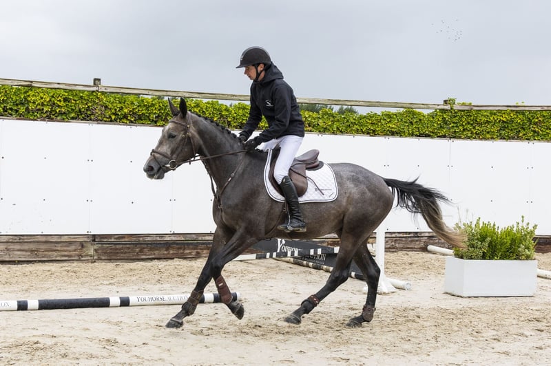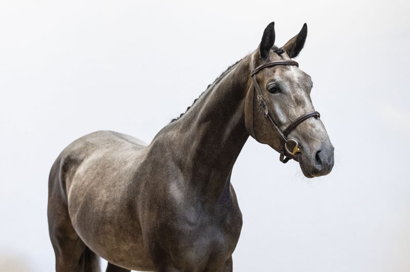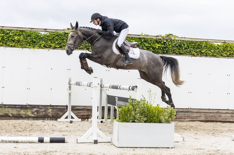 The three-year-old Ginius Z clears bigger fences with ease. The grey gelding already shows a big heart, nice blood and a kind character. At the video day he had been under saddle for two weeks. He already can do lead changes under saddle. Sire Ghost Z (1.55m Grand Prix) is a fifteen-year-old son of Game Boy D 10 (1.60m Grand Prix). Dam Grace v/d Brouwershoeve (Cicero Z van Paemel x Indorado) comes from the same line as the 1.60m Grand Prix horses Amici De Guldenboom with Olivier Philippaerts and Pieter Clemens, and Raimond W with Leslie Burr-Howard, as well as the CCI4* eventing horses Well Designed with Storm Straker (GBR) and Fearless W with Nicole Mills (GBR).