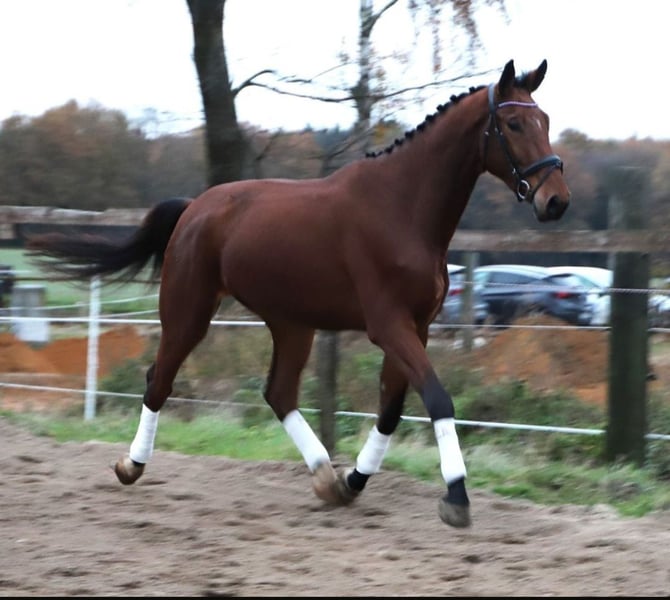 Denver ist ein zurzeit 176 cm großer Zangersheider Wallach (ja er wird noch wachsen). Er stammt von Don VHP Z N.O.P., Diamant de Semilly, Le tot de Semilly/ Be Hooney Moon, Freestyle VD Wolfsakker, Querlybet Hero ab. Genaue Abstammung können wir gerne über WhatsApp versenden. Denver ist ein Pferd mit viel Potenzial für den Springsport. Mit der richtigen Förderung für hohen Klassen. Denver ist noch roh, er durfte noch reifen. :-) Er kennt bereits longieren und 3 mal hat ein Reiter auf Ihm gesessen, ganz cool und artig hat er das gemacht. Auf Wunsch kann Denver bei uns auch noch angeritten werden, das ist kein Problem. So groß wie er auch ist, ist er auch sooooo brav. Unglaublich. Ein aktueller guter großer Tüv liegt bereits vor. Bei Interesse an Videos, schreiben Sie uns bitte direkt über WhatsApp an: 0177/272181 und für weitere Infos, freuen wir uns auf Anrufe. :-)