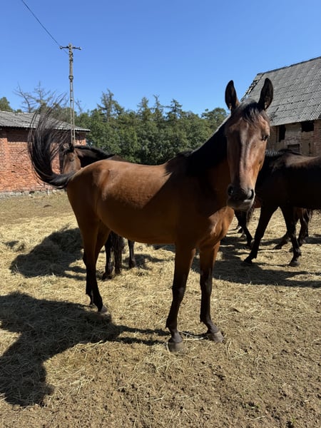 Ok 155cm w kłębie Matka: Caren / Leonardo Ojciec: Clear One / Number One Prosto od hodowcy. Wykastrowany po skończeniu 3 lat, wychowany w różnorodnym stadzie, codziennie jak najdłużej na dworze. Obecnie 24/7 pod chmurką. Nie kontuzjowany, nie kolkował, nie chorował. Przyjął siodło, przygotowany do pierwszego wsiadania. Od początku wakacji nic nie robił. Przyzwyczajony do różnych osób, do różnych sytuacji, psów, dzieci. Fajny rodzinny konik, nie złośliwy. Matka kochająca skoki. Ojciec skoczek. Synuś jak na razie cieszył się życiem dzieciaczka na łące - nie był puszczany w korytarzu. Mnie miał robionego TUV - można badać na swój koszt.