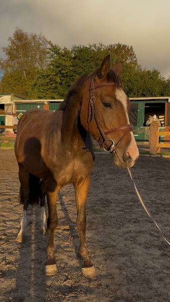 Stalypso x Colcannon (Stakkato x Cornet Obolensky) Calimero is a now 4-year-old gelding, currently approximately 16.1 hh, but well-built and a real buddy type who immediately wins your heart. He has been trained with age-appropriate methods, is backed and already shows impressive potential in free jumping. His dam has placed up to M level, and his sire is well-known to everyone – excellent prerequisites for a successful sporting career. (More videos, including riding and free jumping, can be sent at any time.) In handling, Calimero is an absolute sweetheart: very gentle, well-mannered, and extremely uncomplicated. Loading, farrier, daily handling – all completely trouble-free. A young gelding that simply brings joy and always works friendly. Important! Due to a hand injury of mine, I have not been riding him for the past three weeks. Price negotiable