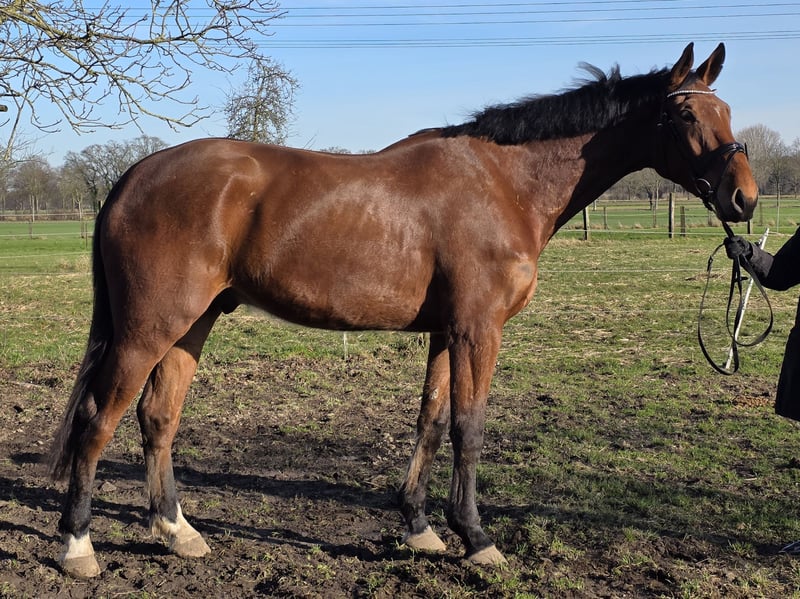 Denver is currently 1.76 meters tall (and he is still growing). He is a Zangersheide gelding sired by Don VHP Z N.O.P., with lines from Diamant de Semilly, Le Tôt de Semilly / Be Hooney Moon, Freestyle VD Wolfsakker, and Querlybet Hero. We can gladly send his detailed pedigree via WhatsApp. Denver is a horse with great potential for show jumping. With the right training, he can reach higher levels of competition. He is still quite green and has room to develop. :-) He is already familiar with lunging, and a rider has sat on him three times—he was very calm and well-behaved during these sessions. If desired, we can also start riding him under saddle, which is no problem. Despite his size, he is incredibly well-behaved. Truly remarkable. A current, thorough veterinary exam is available. If you're interested in videos, please contact us directly via WhatsApp at 0177/2721831. For more information, we look forward to your call. :-)