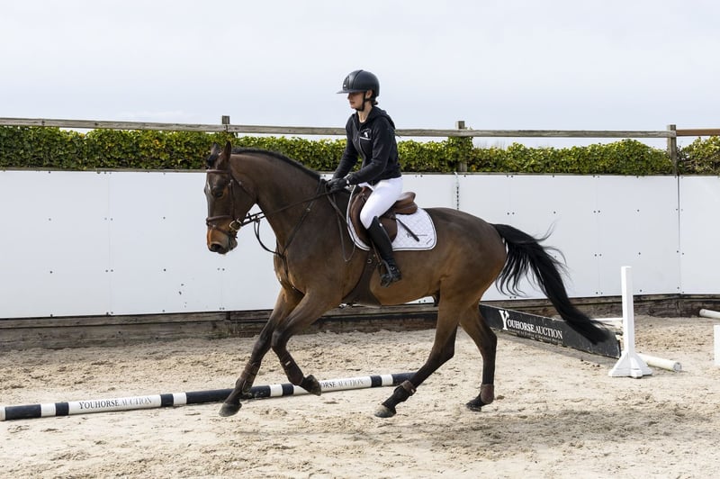Attractive type. Already comfortable to ride and has jumped an 80 cm training course. Has been ridden by an amateur for a year and has a good character. Nice horse, easy to ride. Get on and go, shows scope with ease. Sire Cote d’Or Z – 1.55m level. Son of Carambole (1.60m) x Diamant de Semilly (1.60m). Dam Qulana de Leau Z – 1.45m level. Damline Granddam Aqaba de Leau – 1.50m. From this line come: Chaplin de Leau – 1.40m Qulana de Leau Z – 1.45m Qupido de Leau Z – 1.40m (approved stallion AES) Nafi de Leau Z – 1.35m Coco Chanel van de Zuuthoeve Z – 1.30m Further in the line: Oruth G – 1.60m.