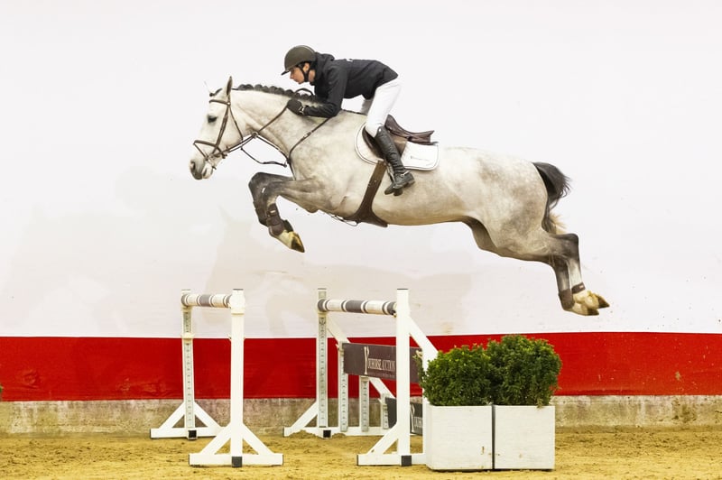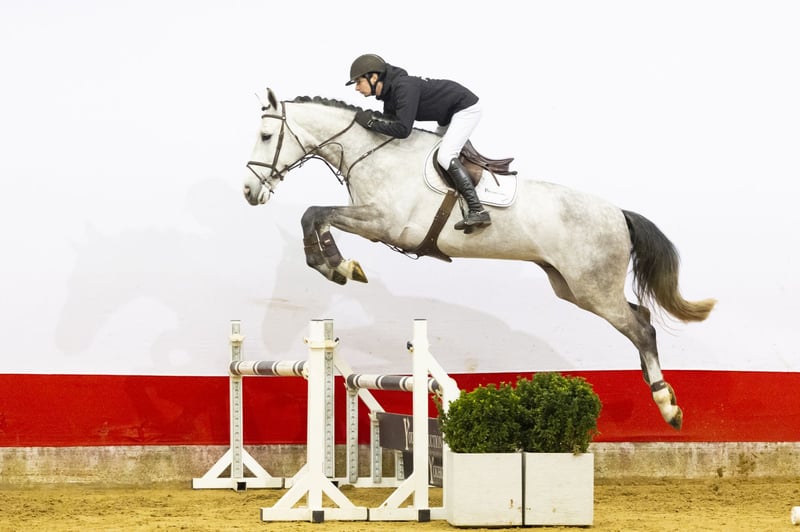 Well-built with a strong, correct conformation. A horse that combines strength and balance with a good disposition. He is ready for a practice course and jumps with scope and quality. He pulls well to the fence, stays positive over the jump, and shows a willingness to cooperate. He has fine bloodlines and jumps with an honest disposition. He is easy and comfortable to ride, making him an excellent amateur horse. A fine sport horse with disposition, scope, and a solid foundation for further development.