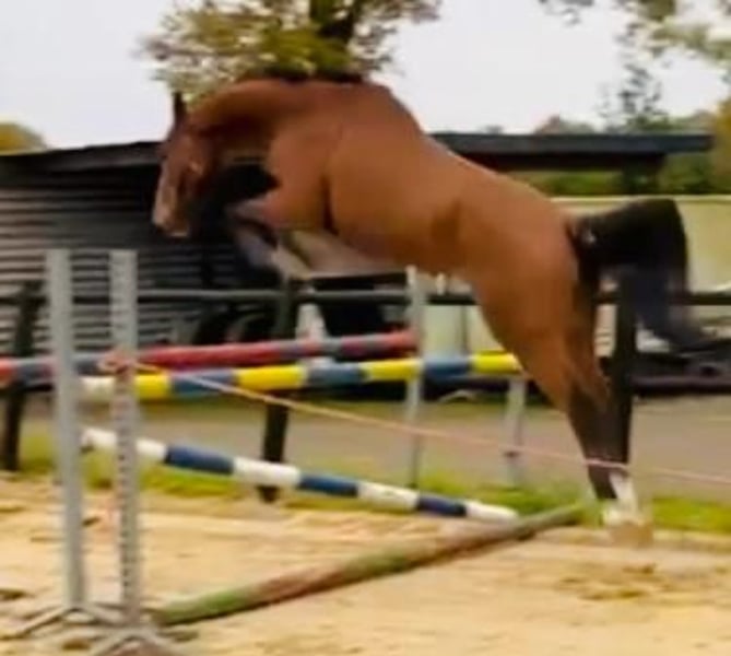 Super utalentowany 5-letni koń ma już pewne doświadczenie w zawodach skokowych bardzo łatwy do jazdy świetny charakter doskonałe zdjęcia rentgenowskie poziom cenowy 34 000 €