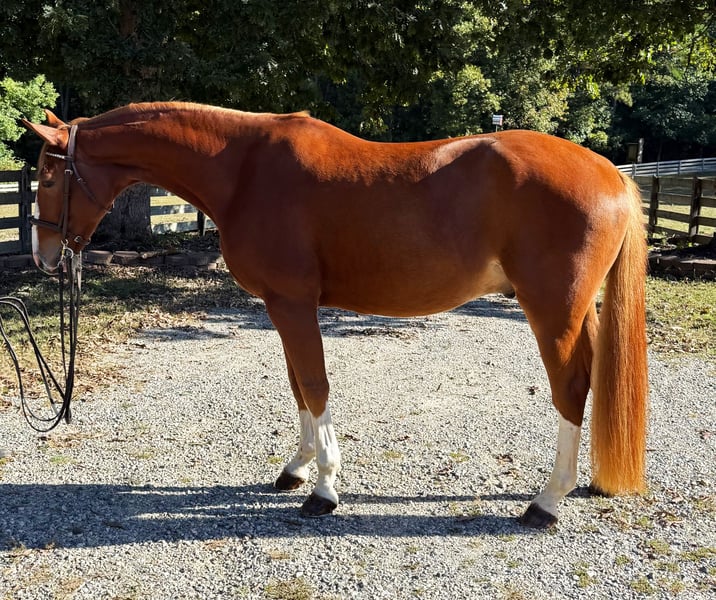 "Falcon" hat alles, was man braucht, und ist zudem sehr intelligent. Er ist ein außergewöhnlicher Kandidat mit endlosem Potenzial und Talent, um ein hochklassiger Springpferd, ein wettbewerbsfähiges Equitation-Pferd oder ein oberes Eventing-Pferd zu werden. Er ist äußerst mutig und geht jede Runde mit einer positiven Einstellung an. Dieses Pferd wäre perfekt für einen ehrgeizigen Junior oder Amateur, der ein sicheres Pferd sucht, mit dem er wachsen und trainieren kann. Falcon springt derzeit Kurse von 2'6" und hat mit dem Wechseln der Beine begonnen (er wird sie machen, wenn er richtig vorbereitet und gefragt wird). Er hat alle neuen Sprünge ohne mit der Wimper zu zucken genommen und wurde an Füller gewöhnt. In seinem jungen Alter ist dieses Pferd wirklich ein Diamant. Falcon macht genauso viel Spaß beim Reiten wie im Stall. Er steht gut für den Hufschmied, den Tierarzt und ist wunderbar im Transport. Er liebt es, verwöhnt zu werden, und wird gerne seinen Kopf in deine Hände legen, den ganzen Tag stehen, um gestriegelt zu werden, und liebt seine Bäder. Er wurde außerhalb des Geländes in Europa ausgebildet und hat sich nach dem Import extrem gut und schnell eingelebt. Aktuelle Röntgenaufnahmen sind vorhanden. Richmond, VA - UTD in allem. *Der Preis wird mit zunehmender Erfahrung steigen. Er steht derzeit bei 15,3 hh, wächst aber und wird voraussichtlich bei etwa oder leicht über 16,0 hh enden.