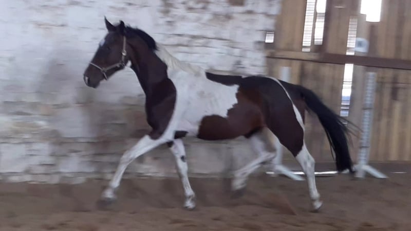 Ein sehr gut entwickelter Wallach mit viel Potenzial der sich für den Sport empfiehlt. Ein Plus zusätzlich zur Qualität des Wallachs ist natürlich seine Scheckfarbe ! Auch in der Größe wird er noch einiges zulegen. Ein Pferd das mit Sicherheit eine sehr gute Anlage ist ! Er durfte bisher noch seine Jugend genießen und ist jetzt in der Ausbildung.