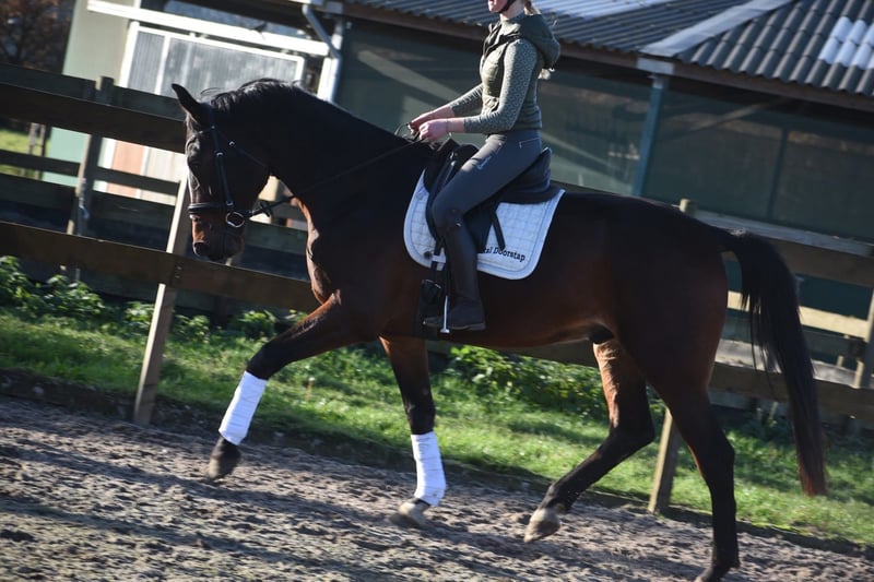 Si observamos la cabeza especialmente expresiva de Harley vd Kapel Z, lo primero que se nos viene a la mente es: este caballo tiene un corazón de oro. Es como si pudiéramos ver su alma a simple vista. Nació el 4 de mayo de 2020 y mide aproximadamente 1.72 m. Al mirar las fotos con atención, notarás que mira a su jinete: "¿Lo hago bien?" Harley es un verdadero complaciente. Un caballo increíblemente agradable y dulce, uno en mil. Nunca te hará daño a propósito. Pudimos adquirir a Harley directamente de su criador. Está bien montado y consideramos que es apto para múltiples usos. Incluso para la recreación, es lo suficientemente tranquilo: en la calle, en el remolque, en manejo, en la trotadora en el establo y en el prado. Con la guía adecuada, creemos que también puede ser adecuado para un jinete principiante. Harley tiene una buena línea de sangre, con parentales como Heartbeat Z y Happy Wind d'Hof Ten Bos, además de Gurioso y Principaal. Cuenta con un informe clínico reciente, incluyendo análisis de sangre y radiografías, sin ninguna observación. Harley también está completamente libre de defectos (en el establo). ¡Un caballo de uno en un millar! Ha sido tratado recientemente por el veterinario dentista y dispone de un informe actualizado. No es una ganga, precio no negociable.