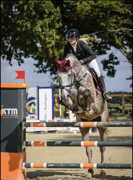 For sale is a 6-year-old Zangersheide gelding, distinguished by his quality and appearance. The 1.75 m tall, elegant chestnut (apple) grey impresses with his very friendly and balanced temperament. His main focus is show jumping, where he demonstrates his talent. The gelding is well-trained and shows great potential for high-level competition. He is very reliable over fences, jumps from all situations, and does not spook. This year, he competed in his first show season, achieving multiple placings in class A and even winning some. He also placed directly in his first L-level jumping competition with a score of 7.8. If you are interested or require further information, please feel free to contact me. Videos can also be sent upon request. To prevent riding tourism, we charge €20 for a trial ride, which will be deducted from the purchase price if a sale is made later.