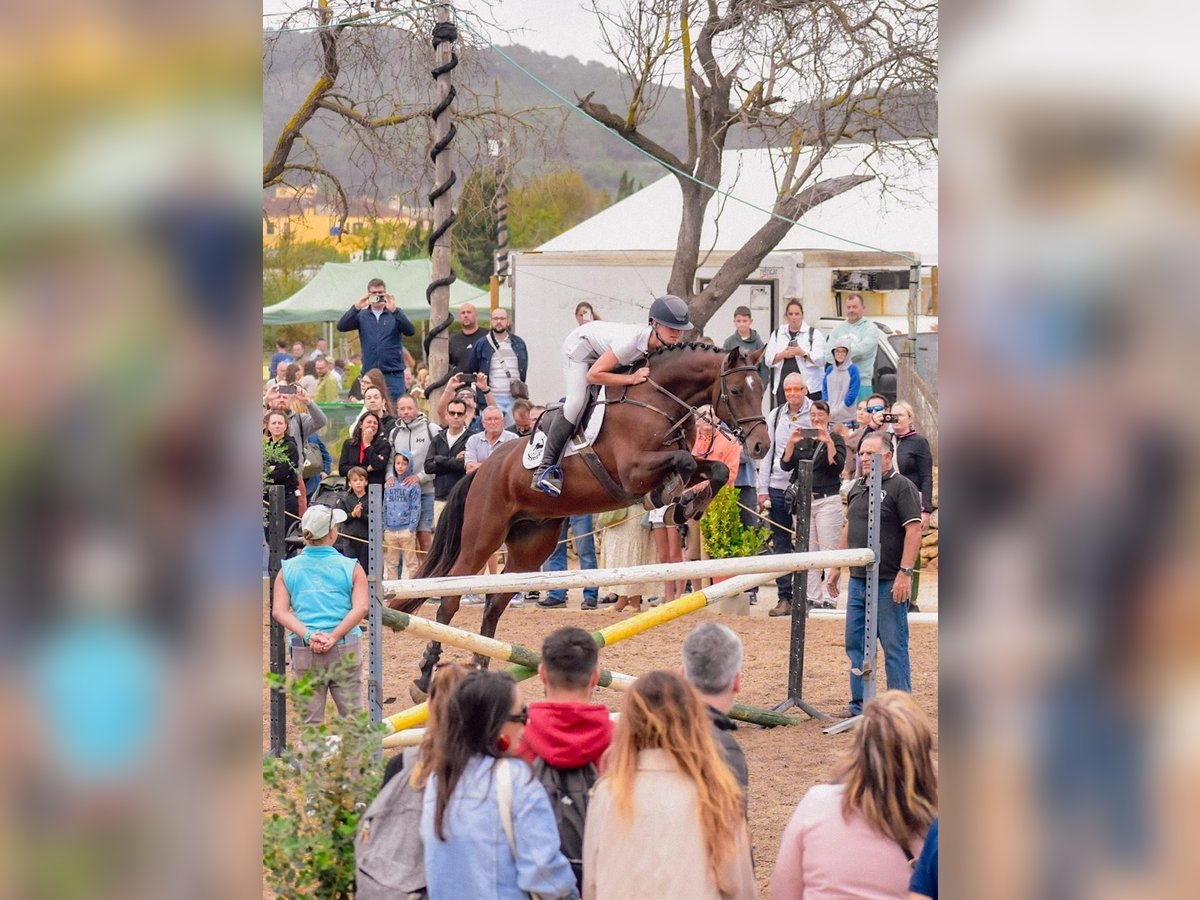 MV Cadarco Z, born in 2018, bred and broken in our own stables. His sire is MV Casscato (Cassini x Locato) and his dam is Delaware (Douglas x Darco). MV Cadarco Z is a very reliable horse. He is fearless, willing to go anywhere — competitions (currently 120 cm), training (130 cm), trail rides, fairs, etc. He can be ridden alone or in a group. Currently, MV Cadarco competes in classes up to 120 cm with his rider, Marina Morro. He has potential for higher levels. An easy and highly agile horse to ride and enjoy. MV Cadarco is suitable for beginners. He is an active horse but very manageable. We started backing him at nearly six years old, allowing him to grow up freely and naturally in our fields. The horse is healthy and goes barefoot. Viewing and testing are available without obligation. We speak Spanish, German, and English. Veterinary examinations are accepted; costs are the responsibility of the buyer. Price: €20,000, negotiable.