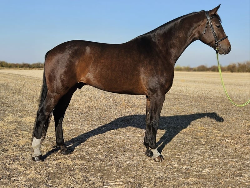 The photos feature an exceptionally talented, 2018-born gelding with a height of 1.74 m (17.1 hh). His sire is an outstanding Dutch Warmblood stallion who has achieved great success in show jumping as well as in breeding. He is a multiple CSI5* Grand Prix winner, has represented the Netherlands in Nations Cup competitions, and has been successful at World Cup events. Many of his progeny are now competing internationally in show jumping. His dam is a high-quality, premium-rated Zangersheide mare, who has competed successfully in show jumping up to 1.30 m. This handsome gelding was raised in an open stable with several other horses until the age of four. He then moved to our stable, where his training began. Under the guidance of a professional rider, he quickly learned the basics of riding, and his training progressed smoothly – he learns exceptionally fast. After completing his basic training, he participated in several age-appropriate amateur show jumping competitions, where he consistently performed in a calm, reliable, and successful manner. In recent months, he has mainly been used as a family and leisure horse, especially for trail riding. However, this gelding is much more than a leisure horse – he possesses enormous potential for a successful show jumping career. He has excellent mental and physical qualities: - Extremely intelligent, eager to learn, attentive, and cooperative. - Always calm, even in new situations. - Excellent conformation: harmonious, muscular, elastic, and supple. - Very good movement: energetic, rhythmically correct, and relaxed in all three gaits. - Outstanding jumping ability: he jumps with very good technique, is precise, brave, and careful. Shows great potential in show jumping. He is healthy and has current veterinary documentation, including X-rays. With just 1 to 1.5 months of targeted training, he is ready to continue his show jumping career or even start a career in dressage or eventing. The horse is located in Békés, Hungary (postal code 5630). Viewings and trial rides are possible by appointment at our farm. Transportation can be arranged upon request. For more information, photos, or videos, please contact us by phone or WhatsApp. Phone / WhatsApp: +36 30 070 17 84 References are available from across Europe!
