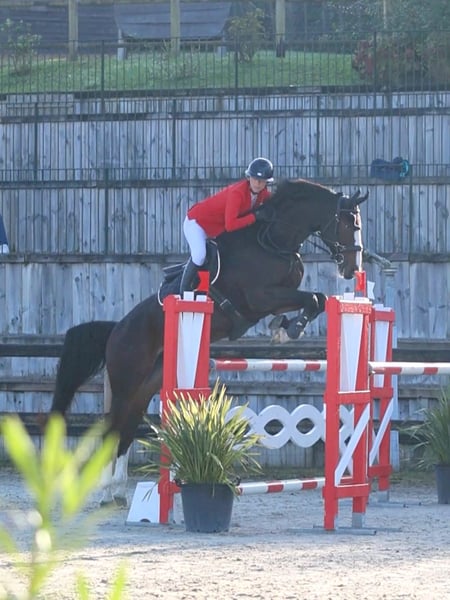 EXCEPTIONNEL Pour Épreuves Pro 140 et + Hongre Zangersheide né en 2017, bai brun, 1m77 Par Gino H (demi frère du grand Hickstead par la mère, père Calvino Z) et Kiss me van't Prinsenveld par Beaulieu's Think Big. Cheval hors du commun, beauté, force, Équilibre, gentillesse, tout en finesse et légèreté. Se pilote du bout du petit doigt sur des montagnes. Dressé " au bouton ", sur les barres il est d'une facilité déconcertante, en dressage un régal, habitué à sortir seul ou à plusieurs en extérieur également. Peut être monté sur 130 en licol, enchaîner des mouvements de dressage d'amateur élite en cordelette, galoper avec un enfant de 3 ans sur le dos. Bref une licorne. Côté sport, il a fait une cinquantaine de tours en 120-125-130. Il commence donc à être "rodé". Il gagne en GP 130 et est très souvent Sans Faute, 4 pts parfois car cavalière débutant ce niveau en CSO. Prêt immédiatement pour 135/140. Un mental en or. Pour cavalier désirant se faire plaisir sur de belles épreuves, ou professionnel pour plus haut niveau. Cheval d'exception qui ne partira QUE avec un(e) cavalier(e) exceptionnel(le). Visible à Pau (64).