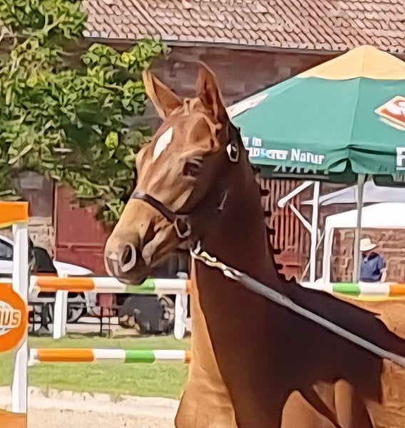 Ta piękna i bardzo poprawnie zbudowana klacz do ujeżdżenia urodziła się 23 marca 2025 roku. Jest wyjątkowym okazem – długonoga, szlachetna, ruda, z czterema białymi pasami. Jest to źrebię z transferu zarodka po słynnym Vitalosie. Jej matka, Quality Time, ma w tym roku 10 lat i jest elitarną klaczą Oldenburską – pochodzenie: Quantensprung / Placido. Quality Time od lat odnosi sukcesy w konkursach ujeżdżenia i do tej pory w 2025 roku zwyciężyła we wszystkich startach. W konkursach M*, S* i S** wygrywała z wynikiem 69-70%. Obecnie jest niemal gotowa na poziom S*** i planuje swój debiut na tym poziomie jeszcze w tym sezonie. W wieku 5 lat kwalifikowała się również do Mistrzostw Niemiec (Bundeschampionat). Dzięki temu pięknemu i utalentowanemu klaczkiźniowi zapewniasz sobie przyszłość! Sprzedaż bezpośrednio od hodowcy. Matka jest u nas i można ją obejrzeć na miejscu. !! Klacz, przy której widać, że źrebię podąża za nią na luźnej linie, nie jest jej genetyczną matką, lecz klaczą dzierżawioną. Na filmach i zdjęciach widoczna ruda klacz do jazdy to jej genetyczna matka. Ponadto oferujemy pełnego brata tego źrebięcia, urodzonego 10 marca 2025 roku.